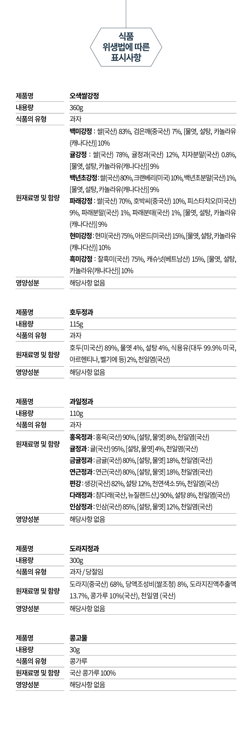 850g/ 쌀강정27/ 호두강정9/ 과일정과11/ 도라지정과300g/ 콩고물15g*2