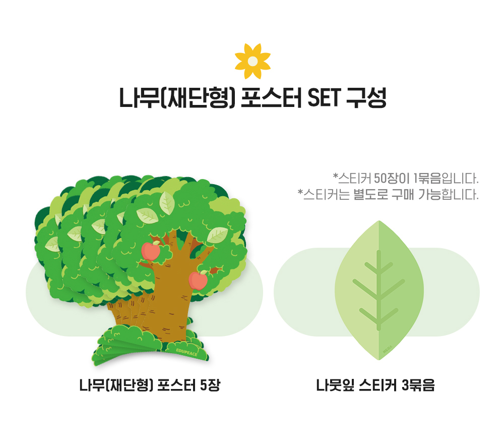 에듀피스 나무포스터 재단형 5장+ 나뭇잎스티커 3개 set